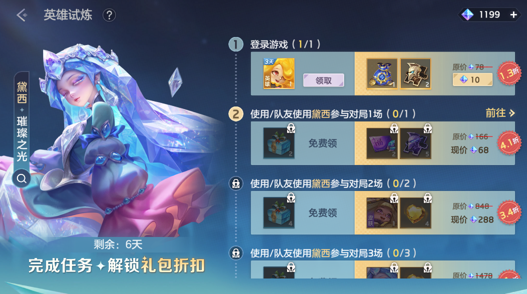 黛西迎来重做,完成任务解锁礼包折扣,获取精致手信礼包、新款表情O.o等奖励,还可折扣购买黛西·魔法、黛西·璀璨之光、15级绘卷经验包、金币惊喜福袋等奖励。