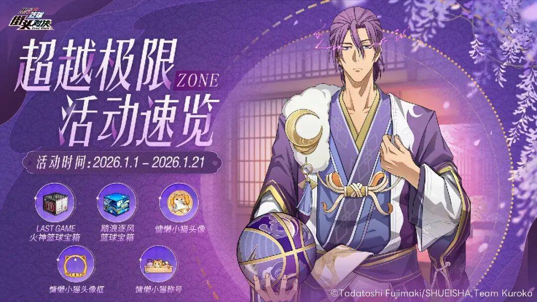 1月1日元旦,「LAST GAME火神」登场!同时ZONE超越极限活动上线,参与活动领取慵懒小猫头像、心愿皮肤扭蛋券和潜力抽取抵用券等好礼。