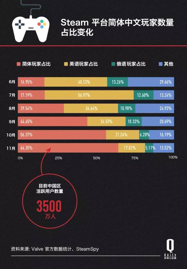 根据Steamspy网站统计,目前中国区Steam用户数量已经达到了3500万人次,而一年前,这个数字还只有1000多万人。