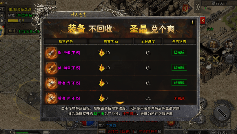 3. 后期稳奖励:当己方行会占据皇宫,开始倒计时(10分钟)时,散人玩家需留在皇宫内,不要轻易离开,重点清理试图进入皇宫的敌方玩家,确保行会持续占据皇宫;若倒计时结束,己方行会成功占领沙巴克,即可等待奖励发放,联系客服领取冶炼圣晶,直接寄售变现,赚取额外收益。